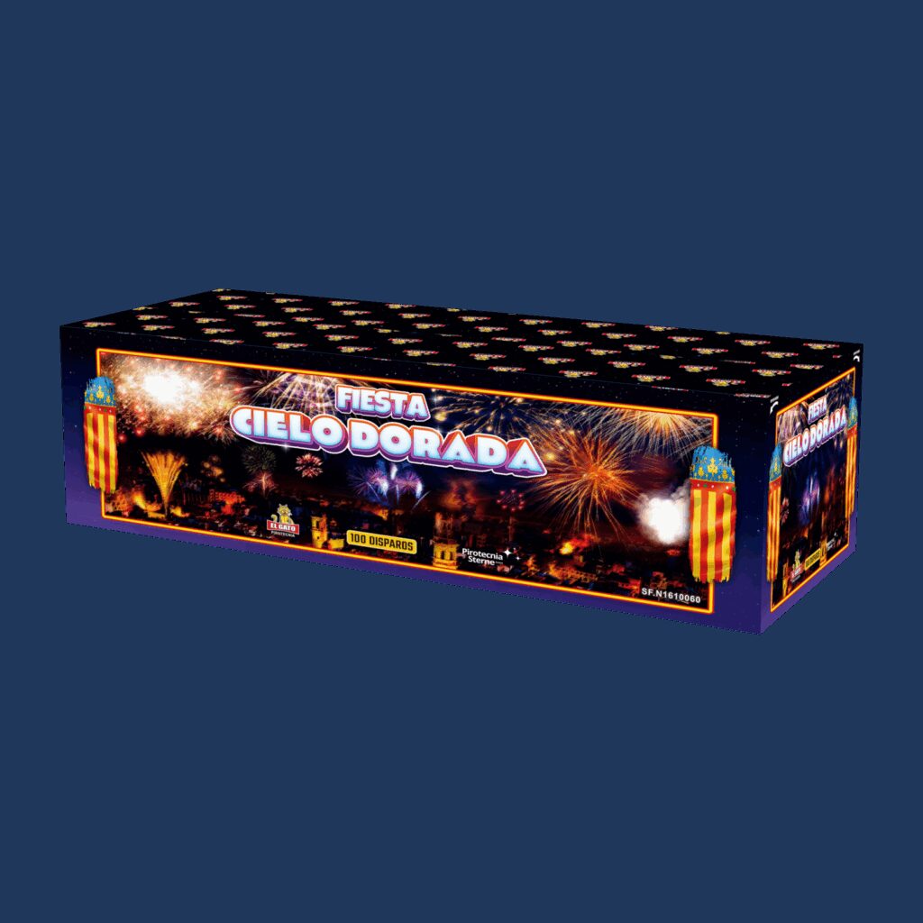 El Gato Vuurwerk Fiesta Cielo Dorada (batch25) 100 Shots Goedkoop vuurwerk kopen bij Vuurwerkwinkel Ijmuiden